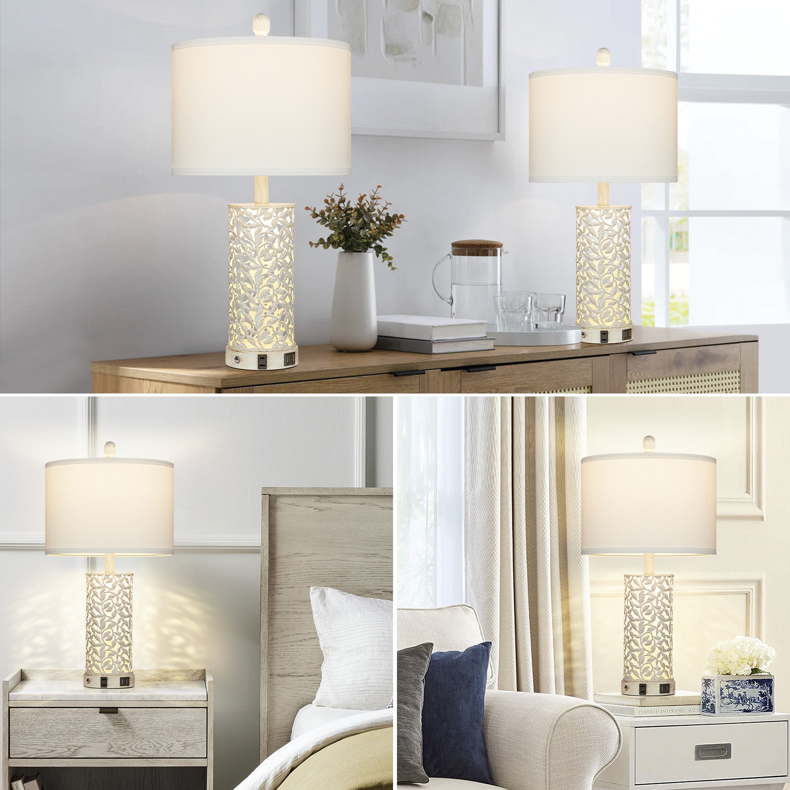 Modern Table Lamps with USB-C & AC Outlets, Night Light, and Charging Station(Set of 2)