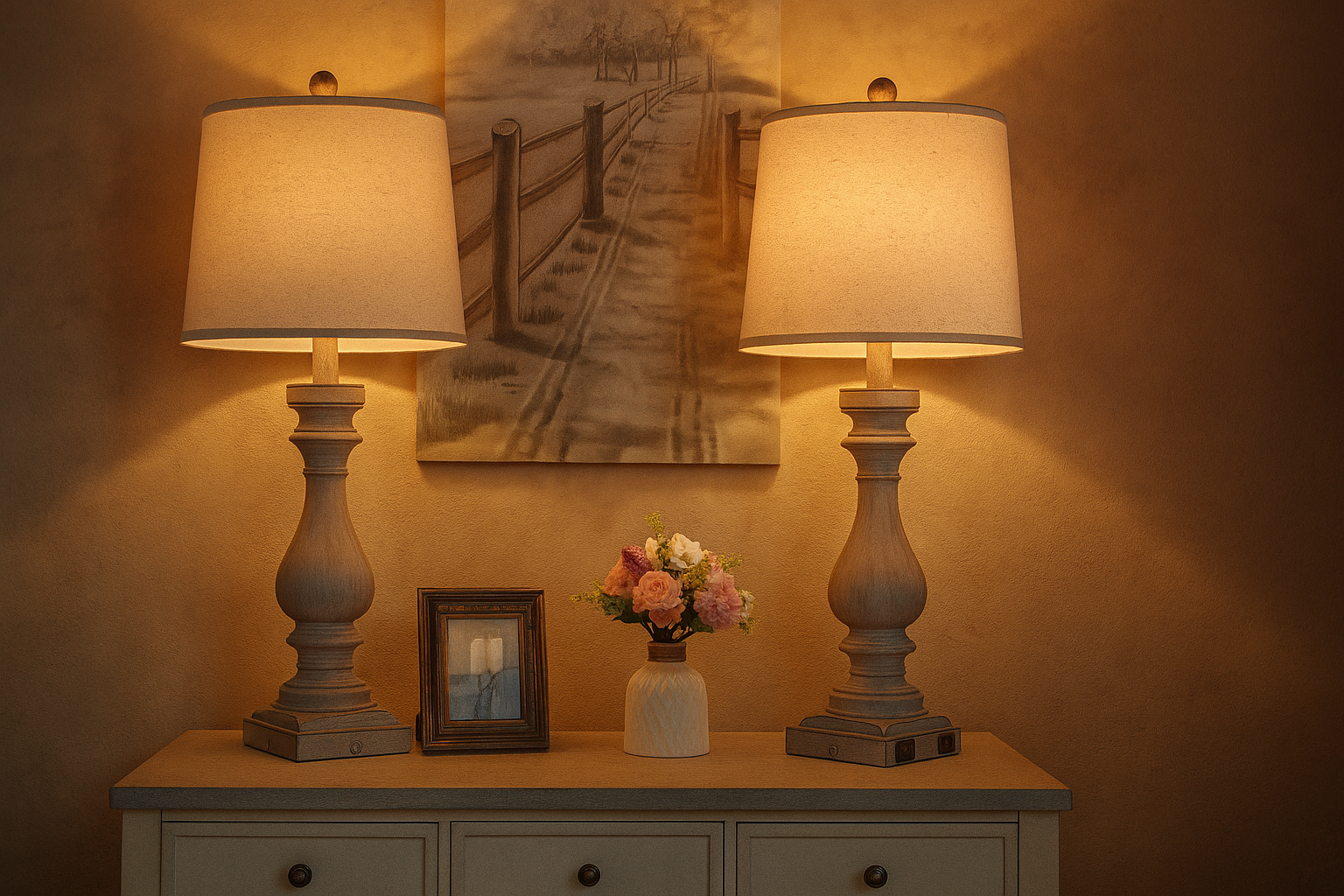 Industrial Farmhouse Table Lamp with Dual Lighting & USB/Type-C Charging Ports(Set of 2)