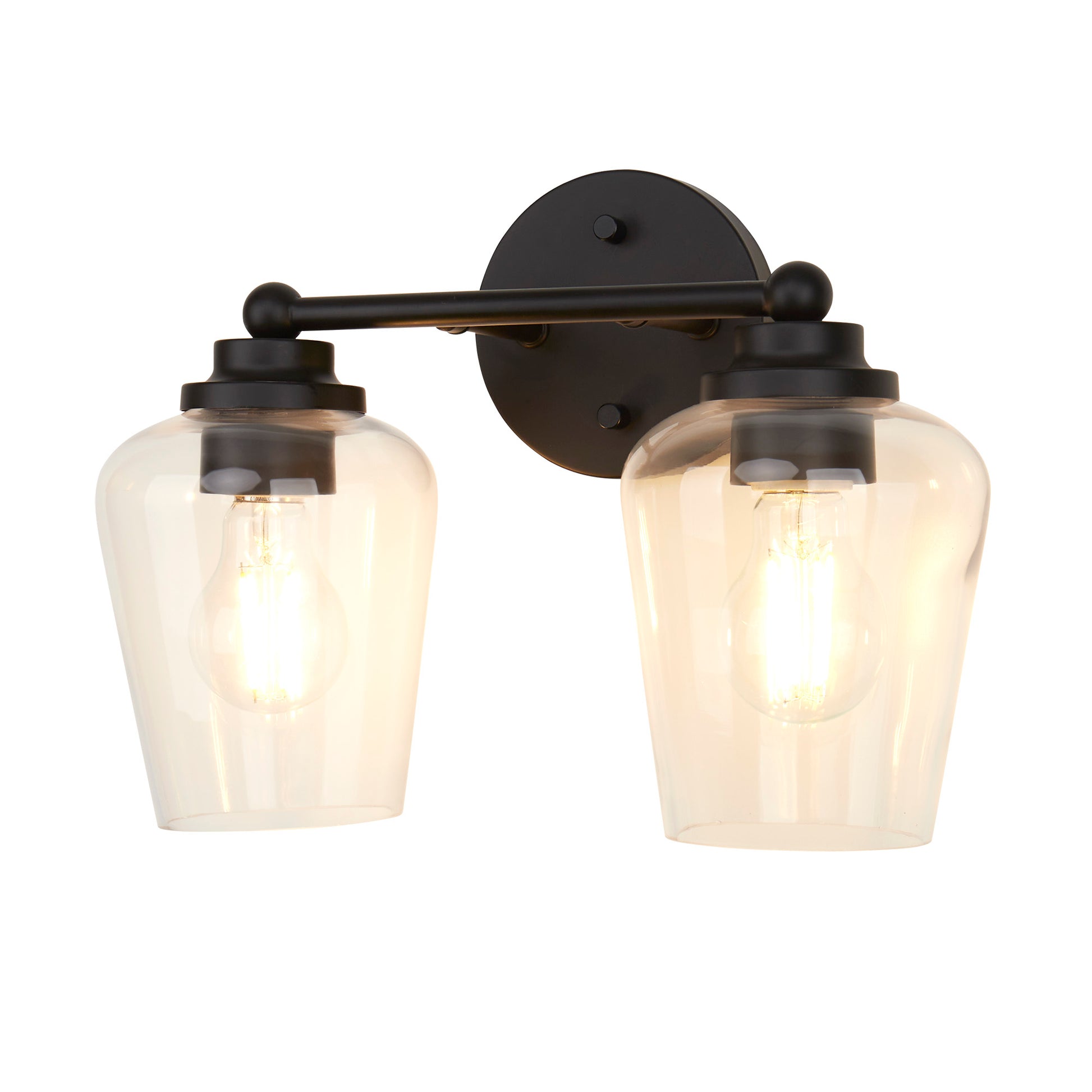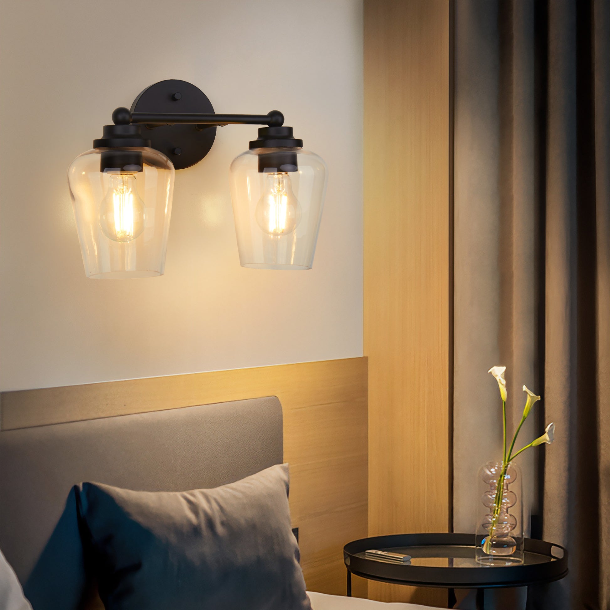 1 with 2 Wall Sconces Coffee Frame Metal Base Wine-glsss Like Glass Shade