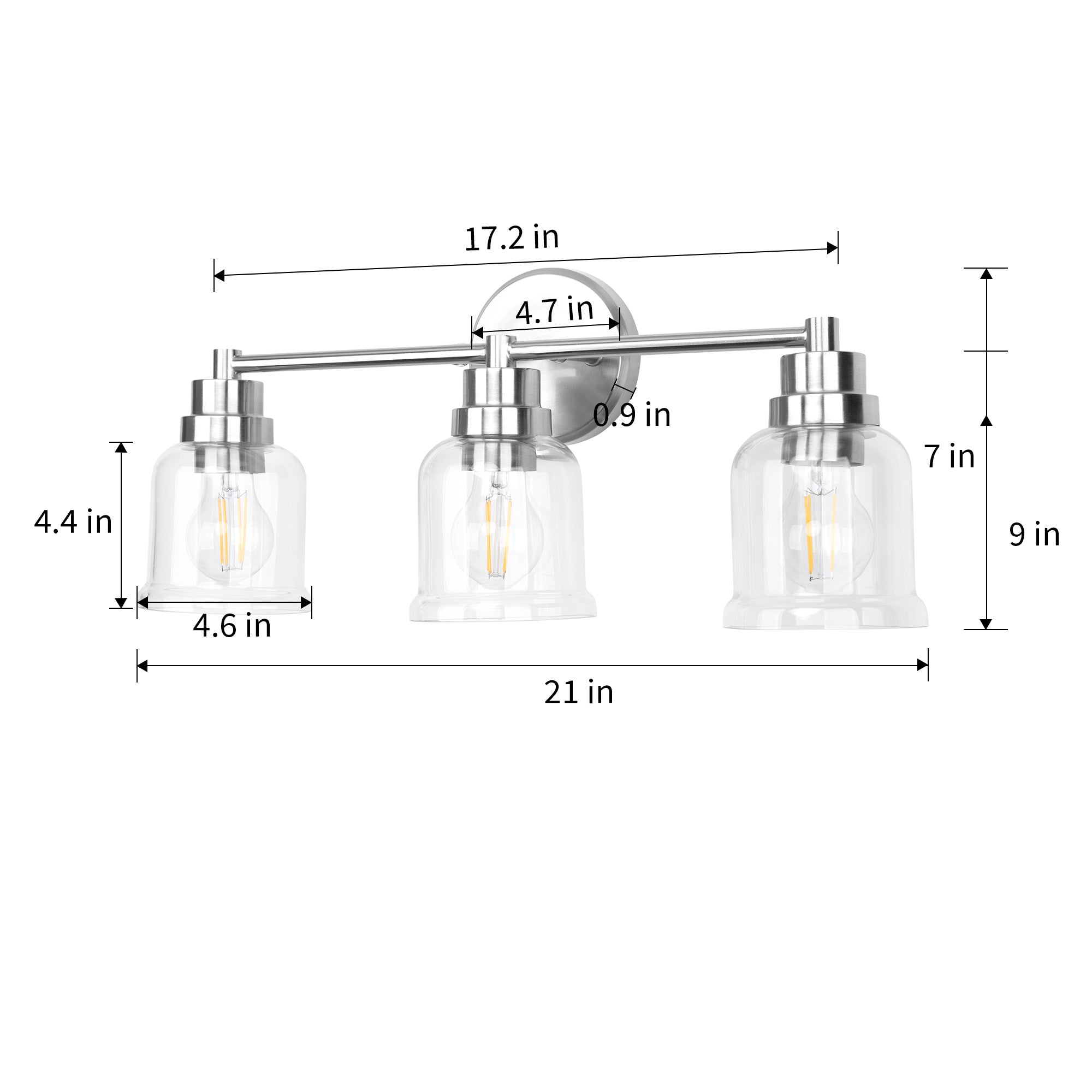 1 with 3 Wall Lights Stainless Steel Base Frame Glass Shade