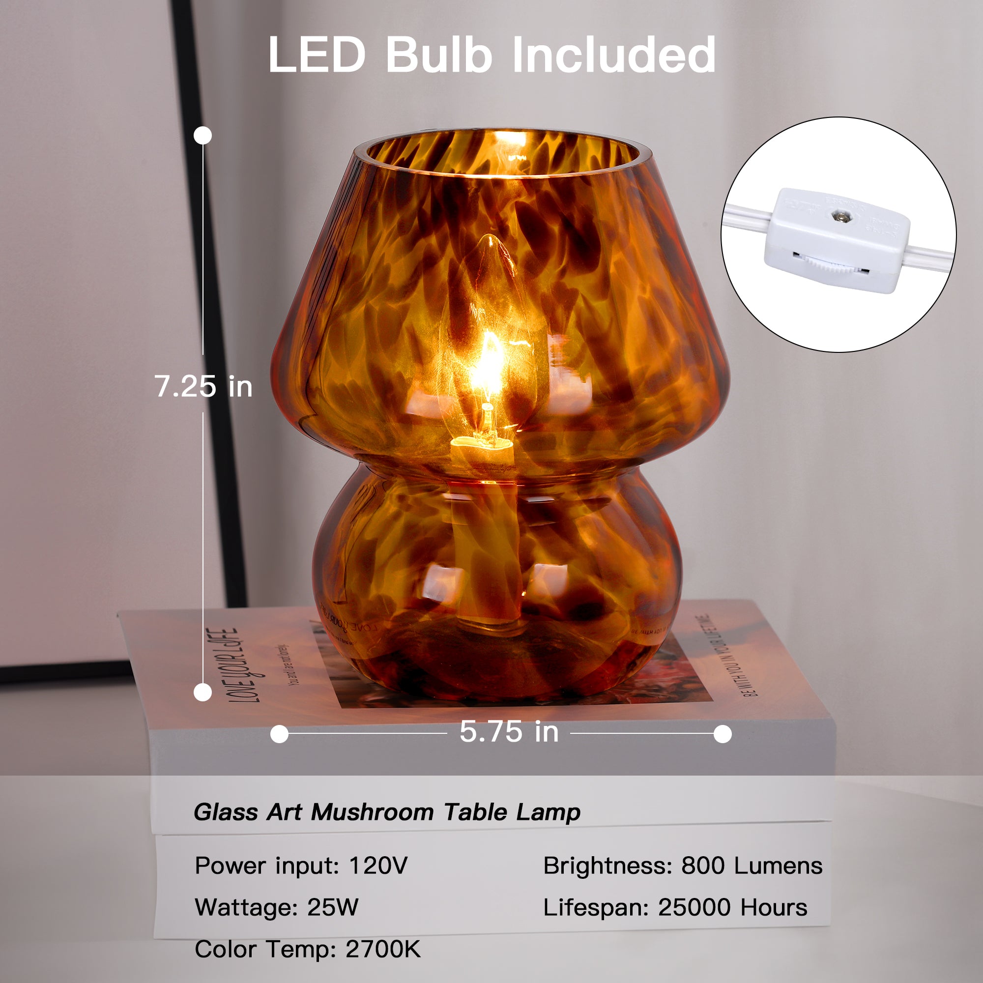 Brown Leopard-Printed All-Glass Table Lamp Featuring an Inline Switch
