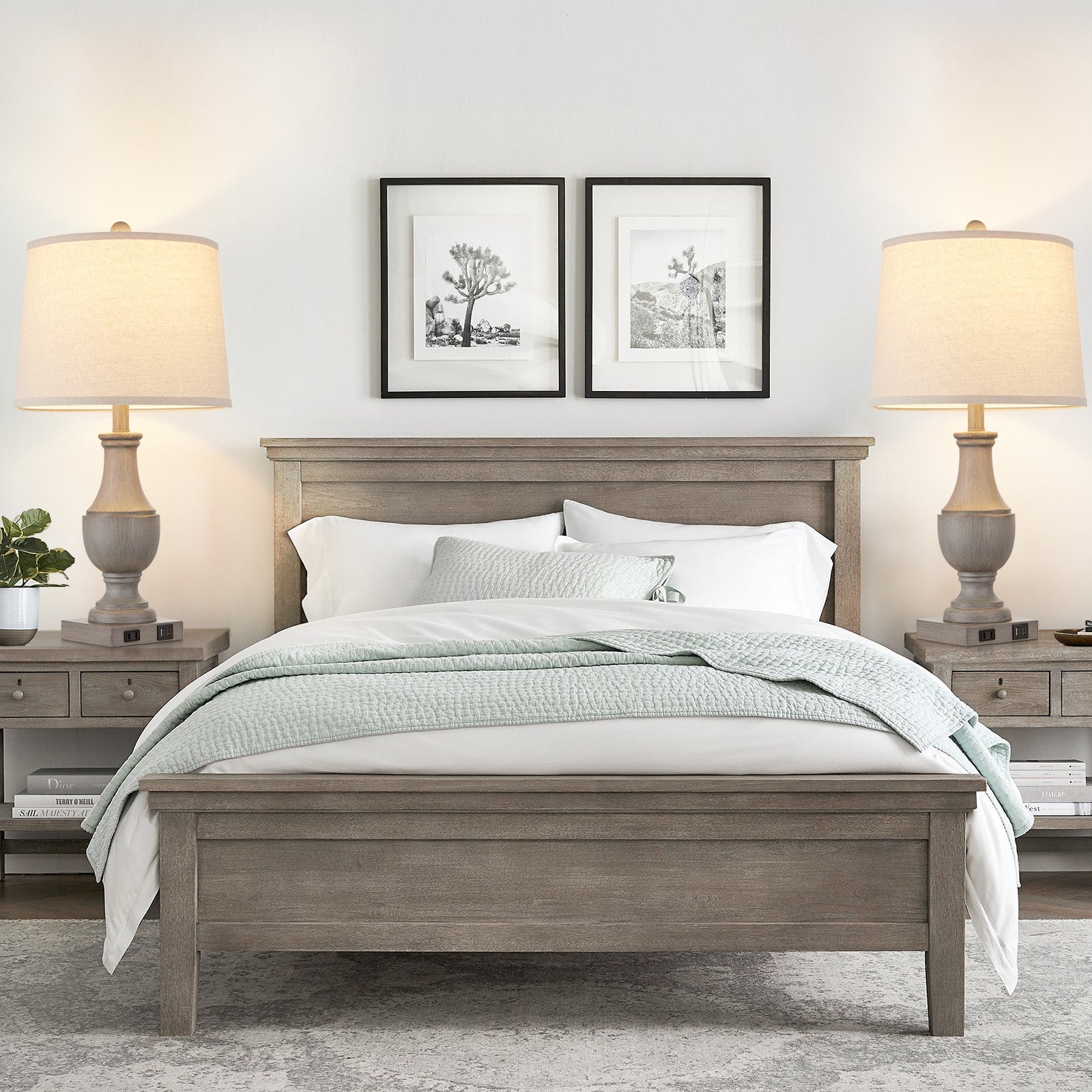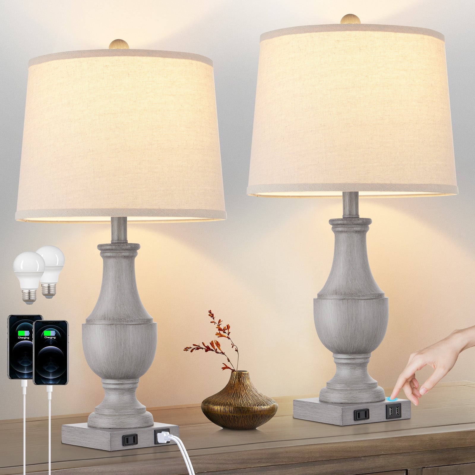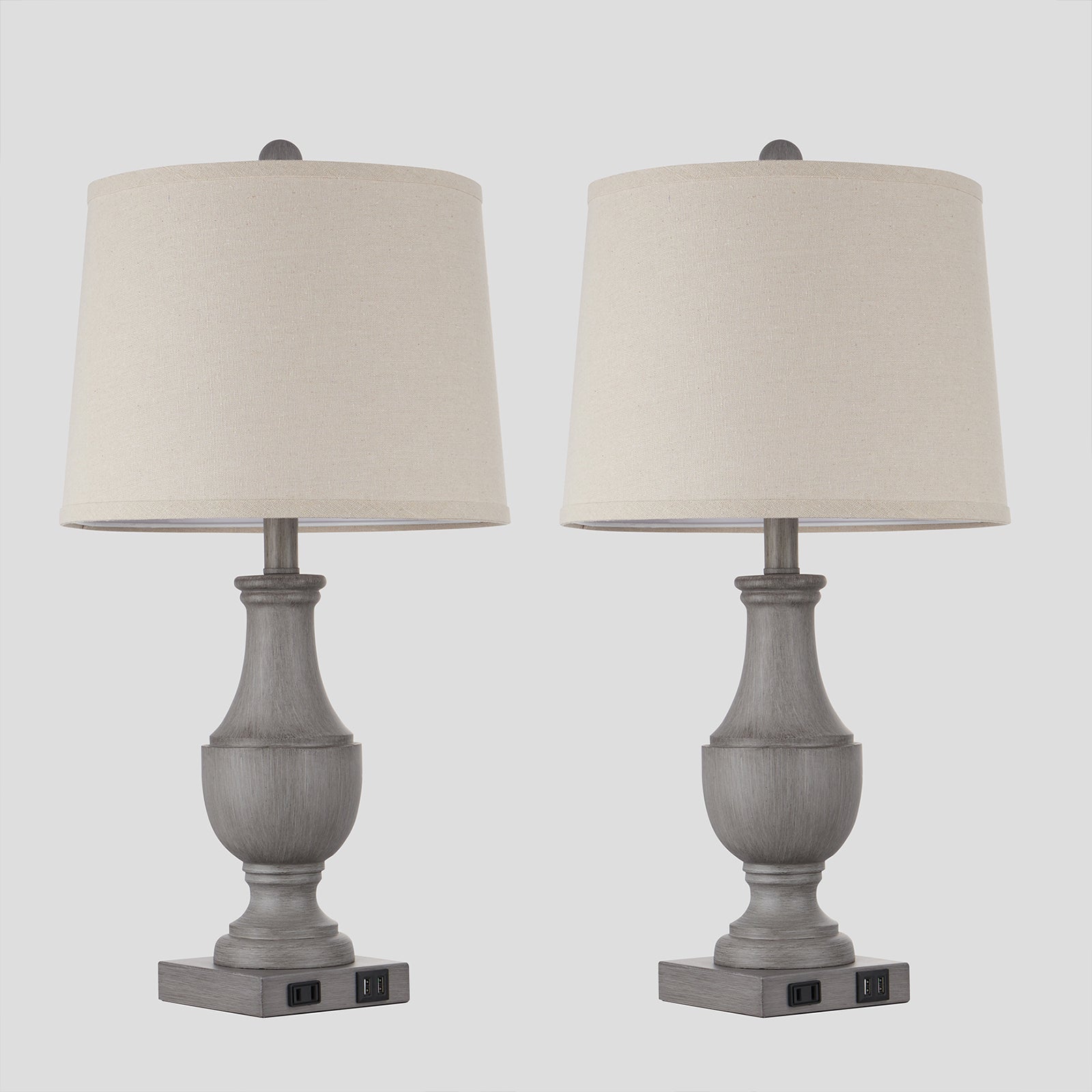 Cinkeda Table Lamp Gray Resin USB Port & AC Outlet (Set of 2)