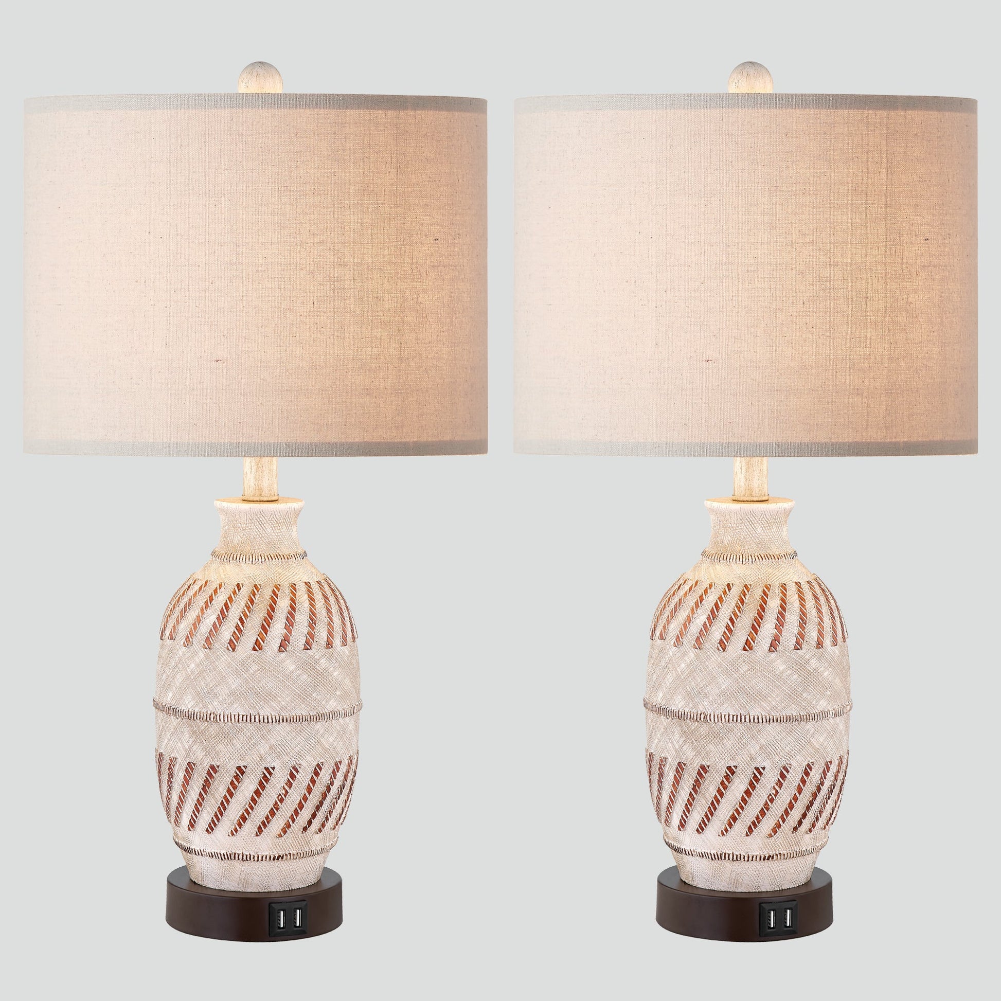 Cinkeda Table Lamp Beige Resin Carving Touch 3-Way Dimming (Set of 2)