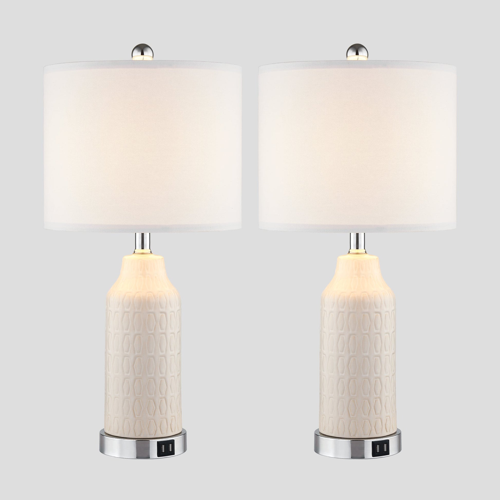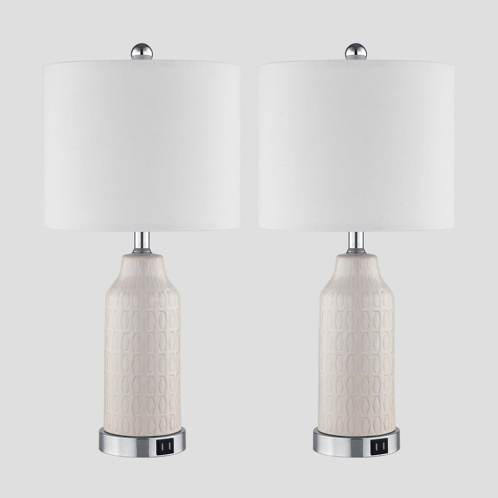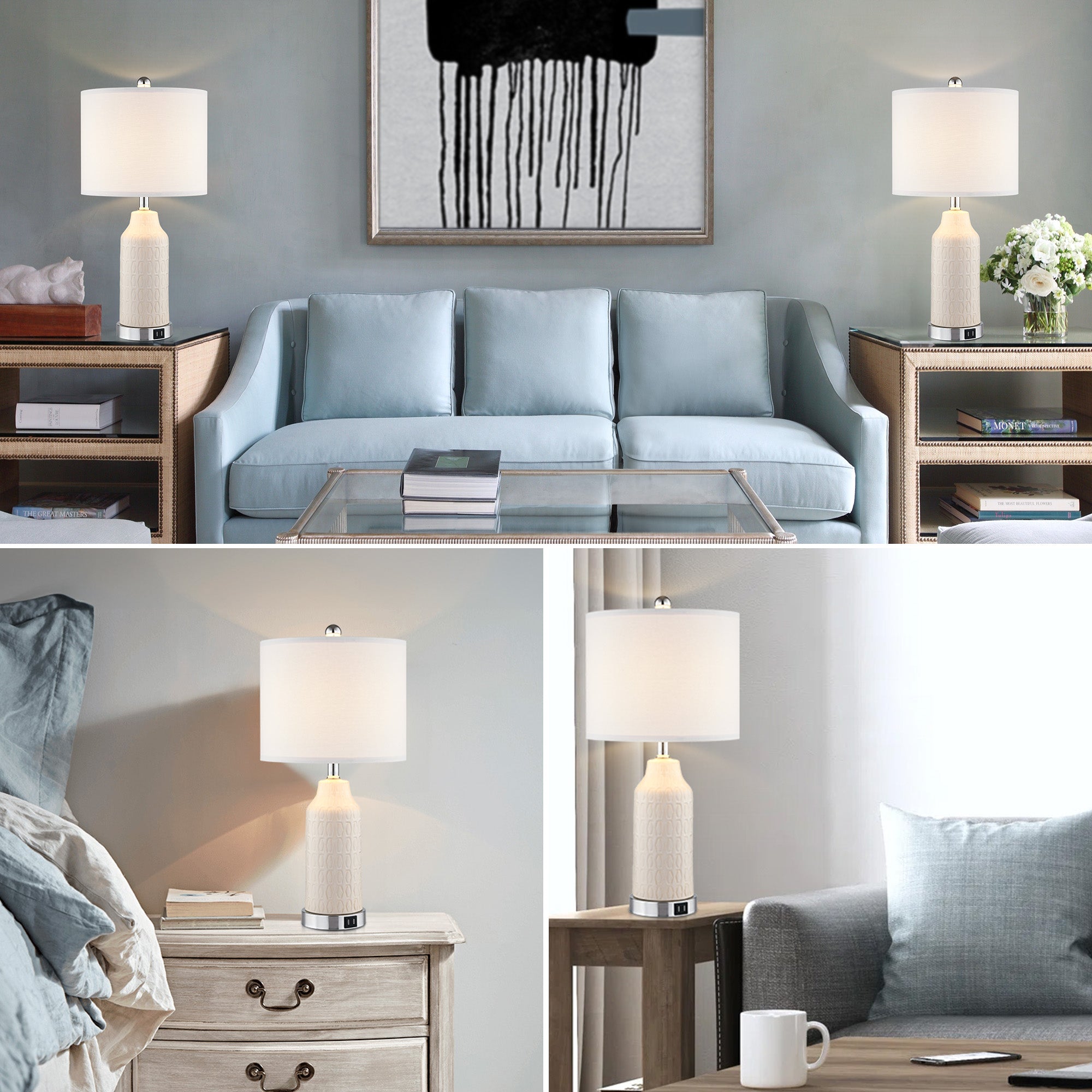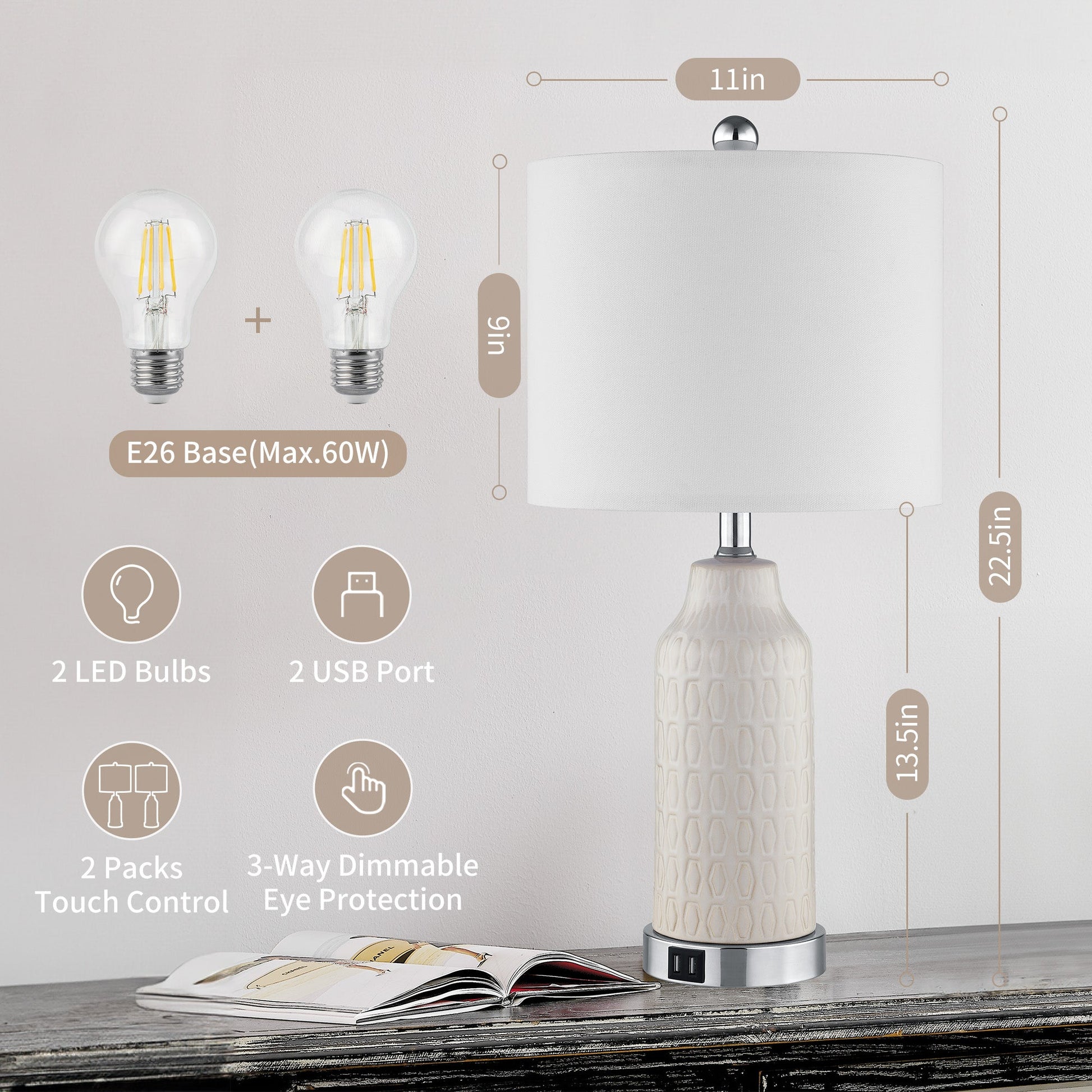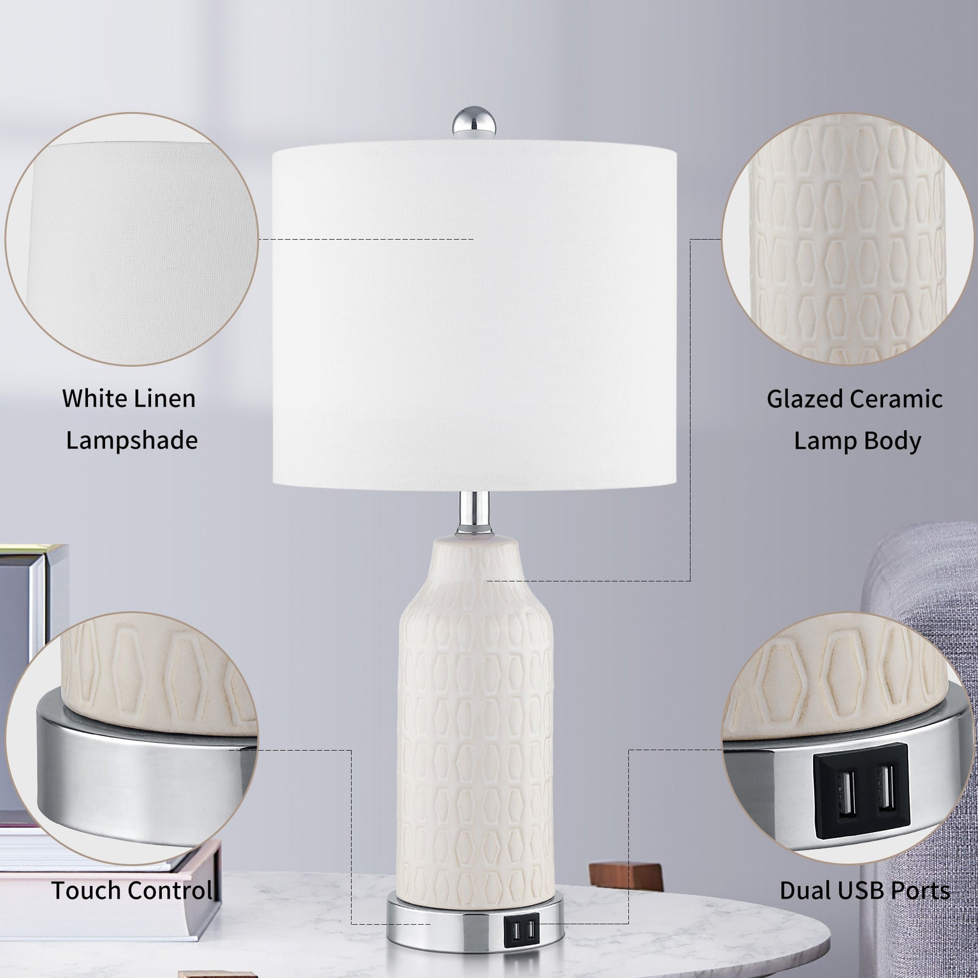 Table Lamps White Ceramic Touch Dimming USB Port AC Outlet(Set of 2)
