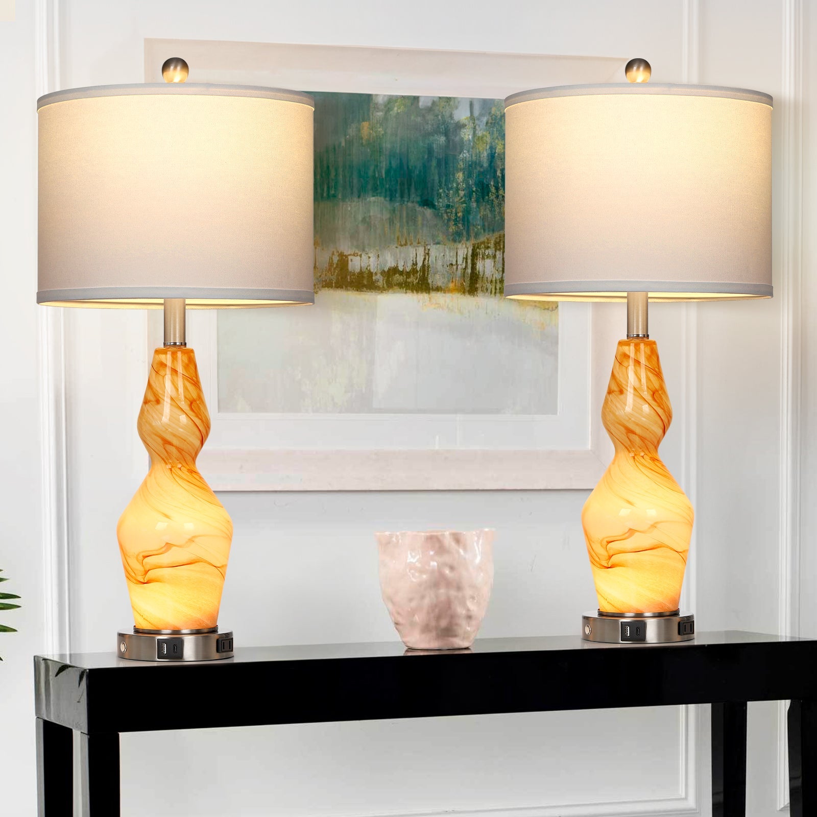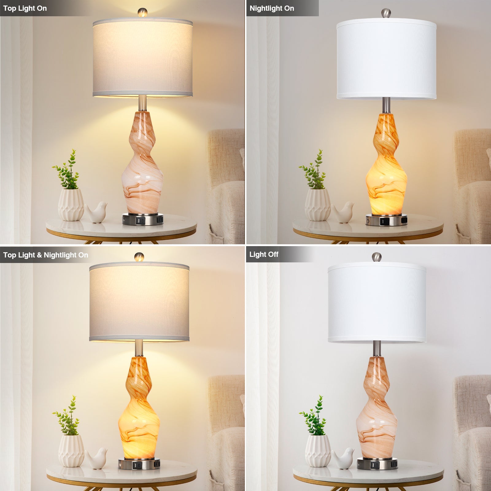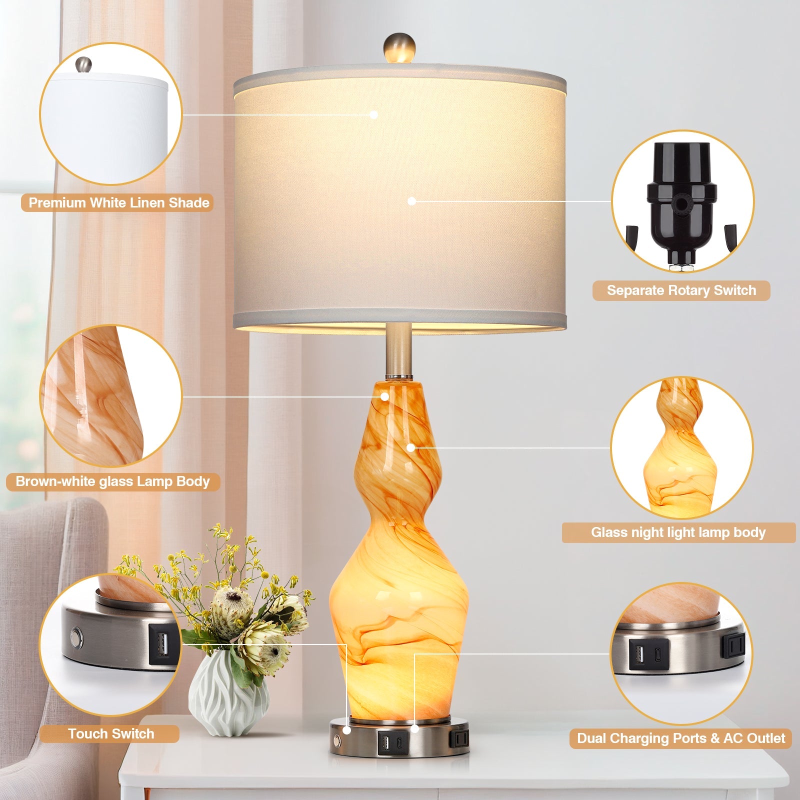 Exquisite Brown Texture 2-in-1 Brown Art Glass Nightlight Table Lamp (Set of 2)