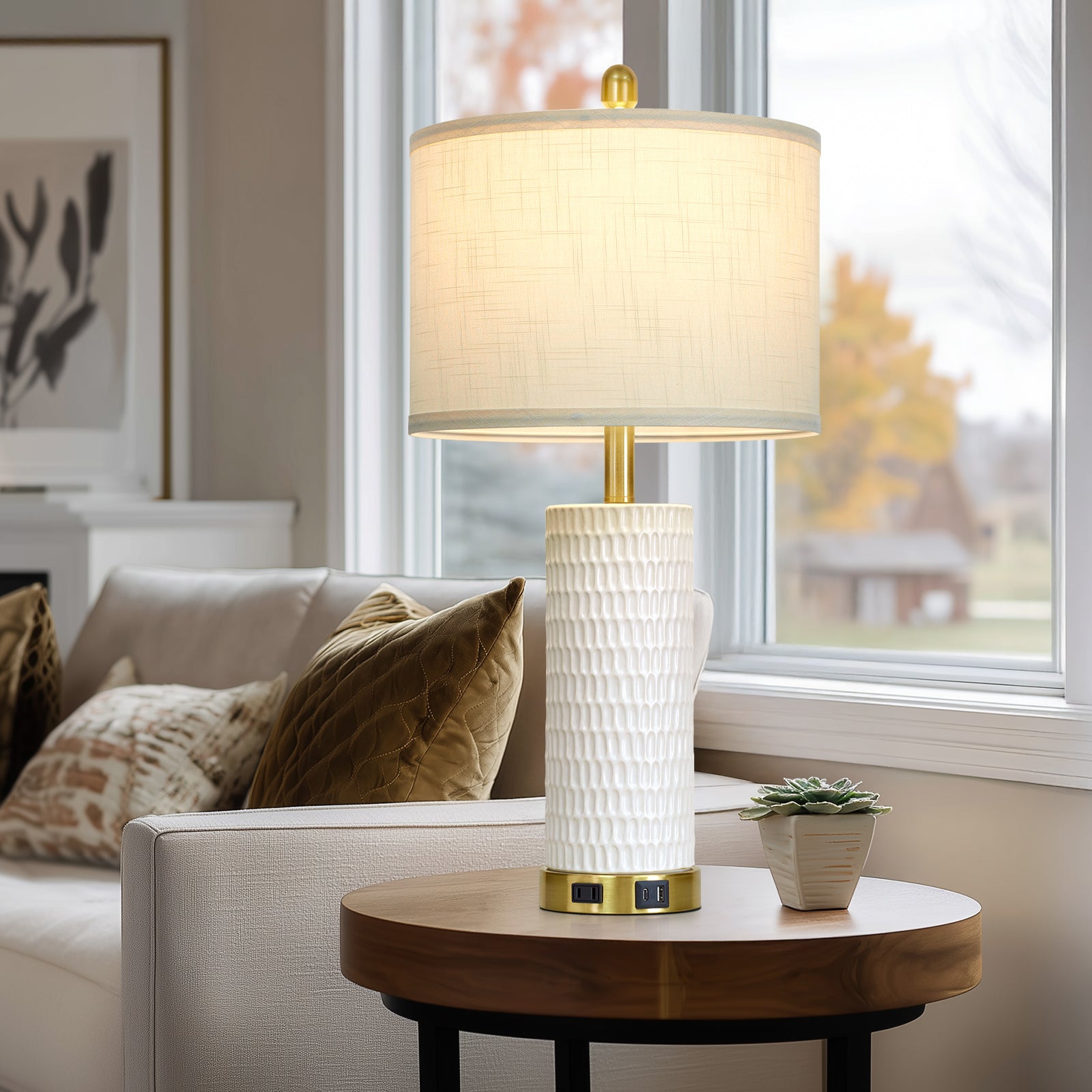Modern Table Lamps with USB-C & AC Outlets, Touch Control, 27" Height(Set of 2)