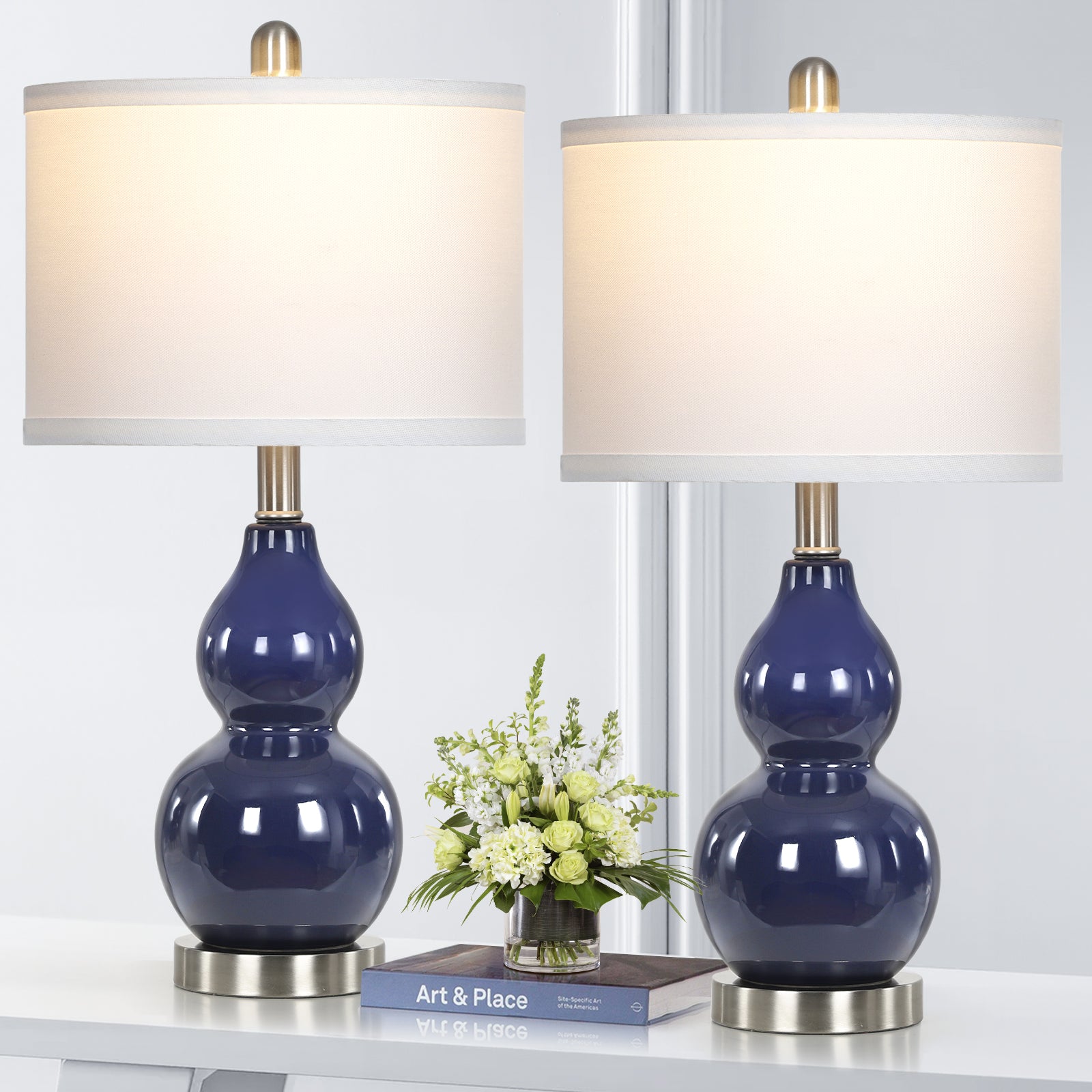 Navy Blue Ceramic Table Lamps with Gourd Lamp Body (Set of 2)