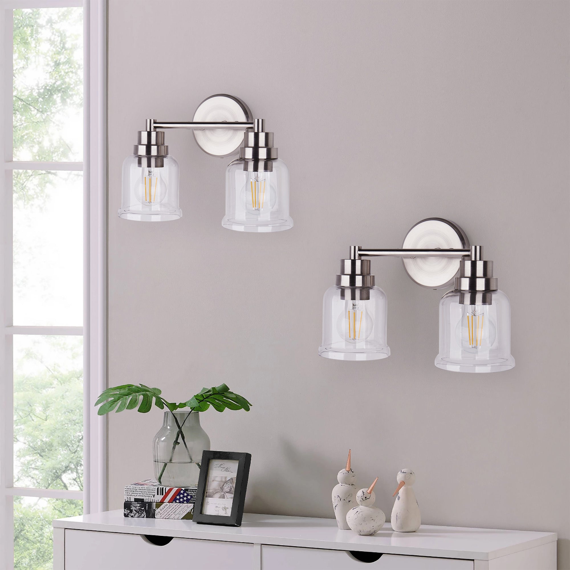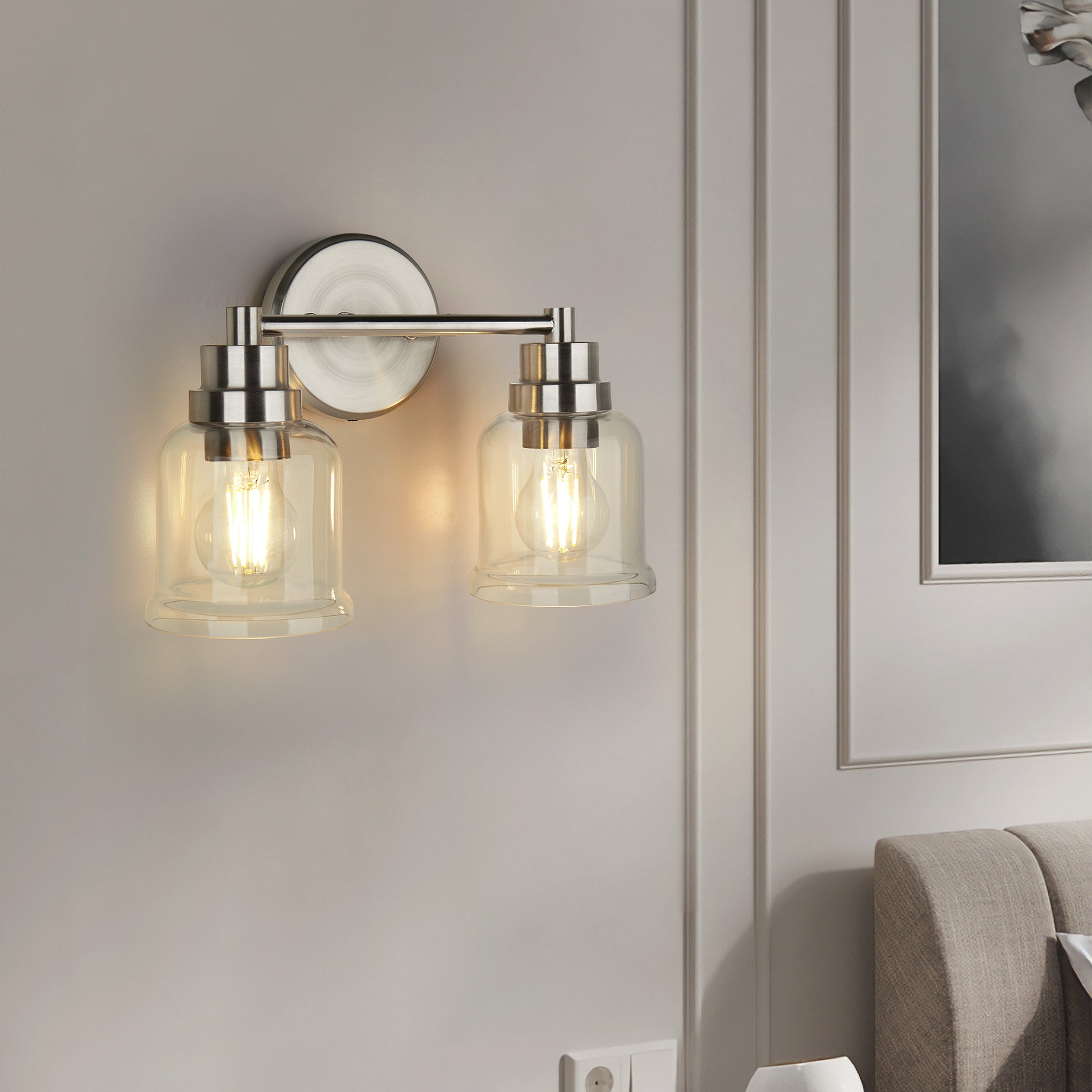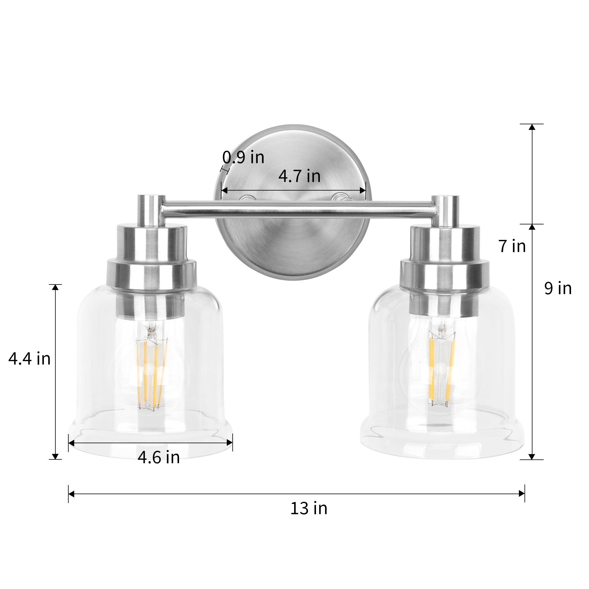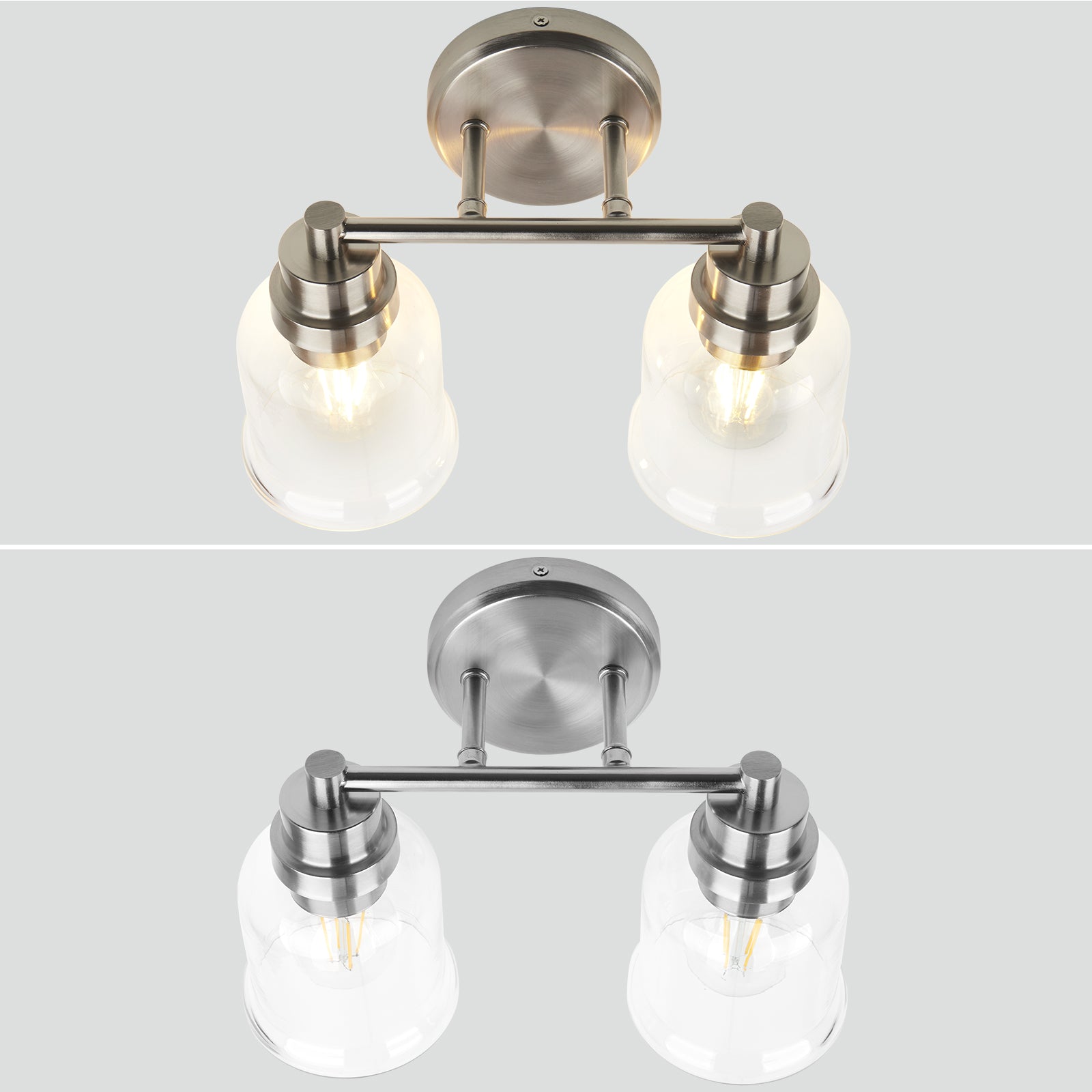 One with Two Wall Lights Stainless Steel Base Frame Glass Shade