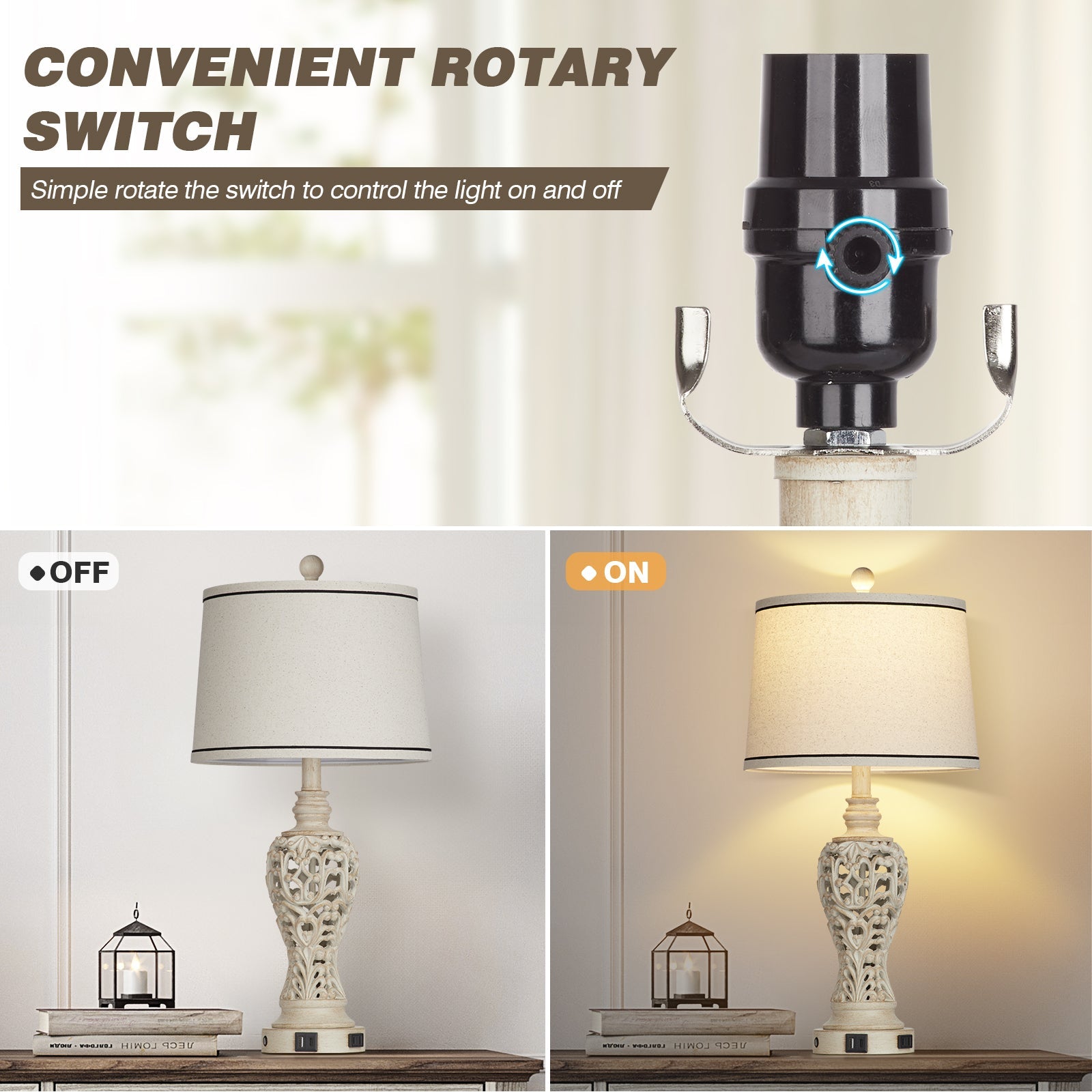 White Resin Nightlight Table Lamp 2in1 with USB Charging Port (Set of 2)