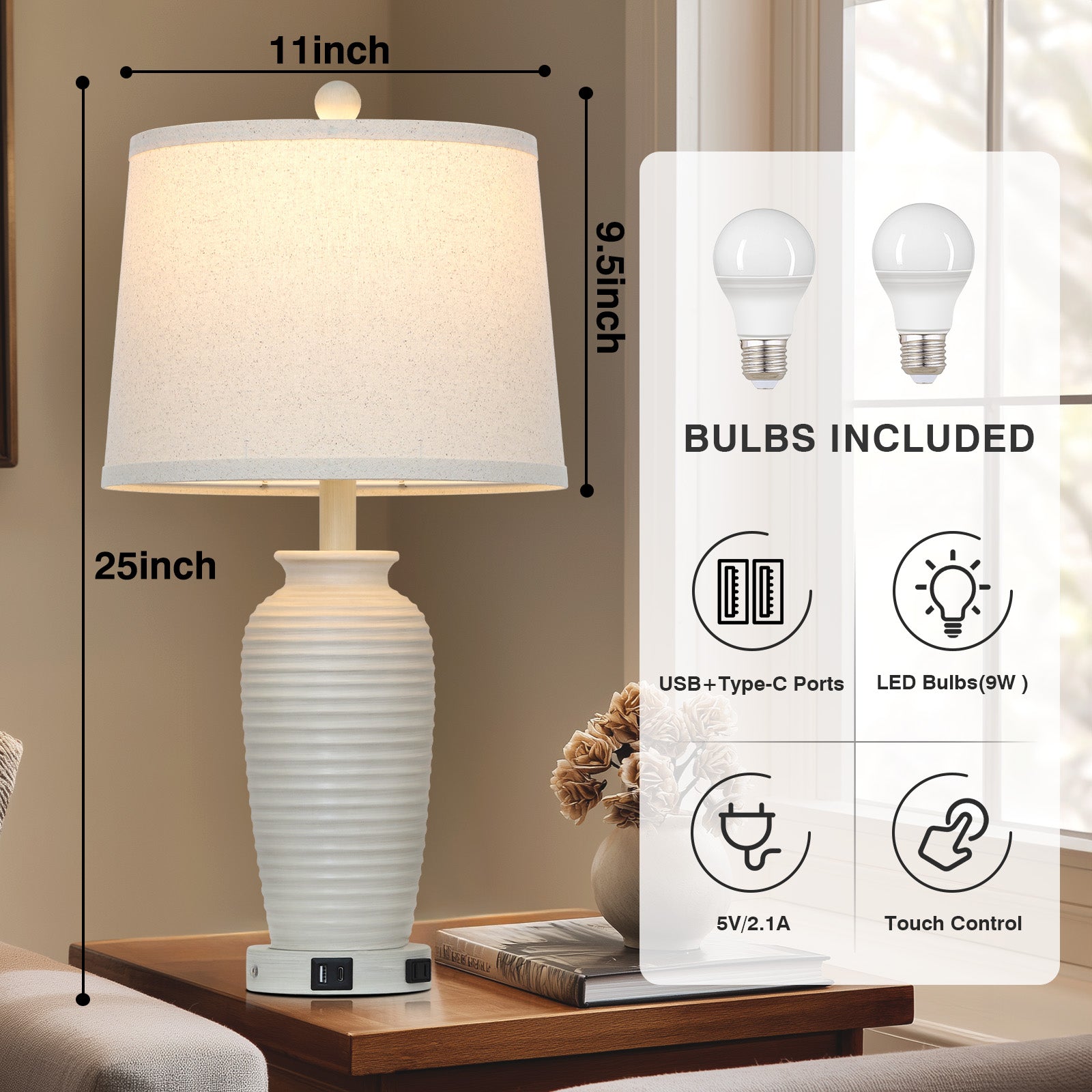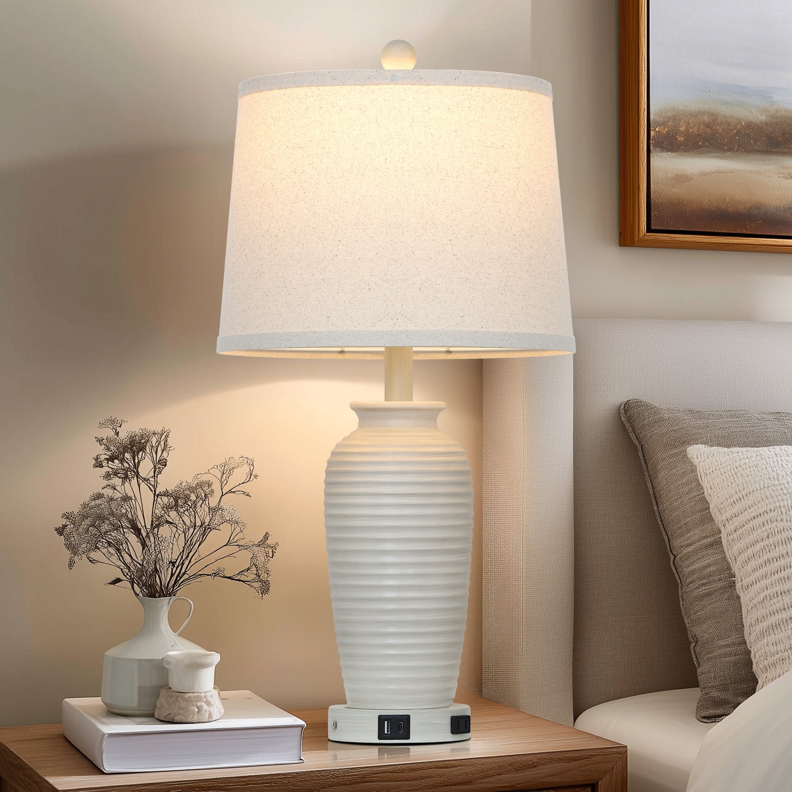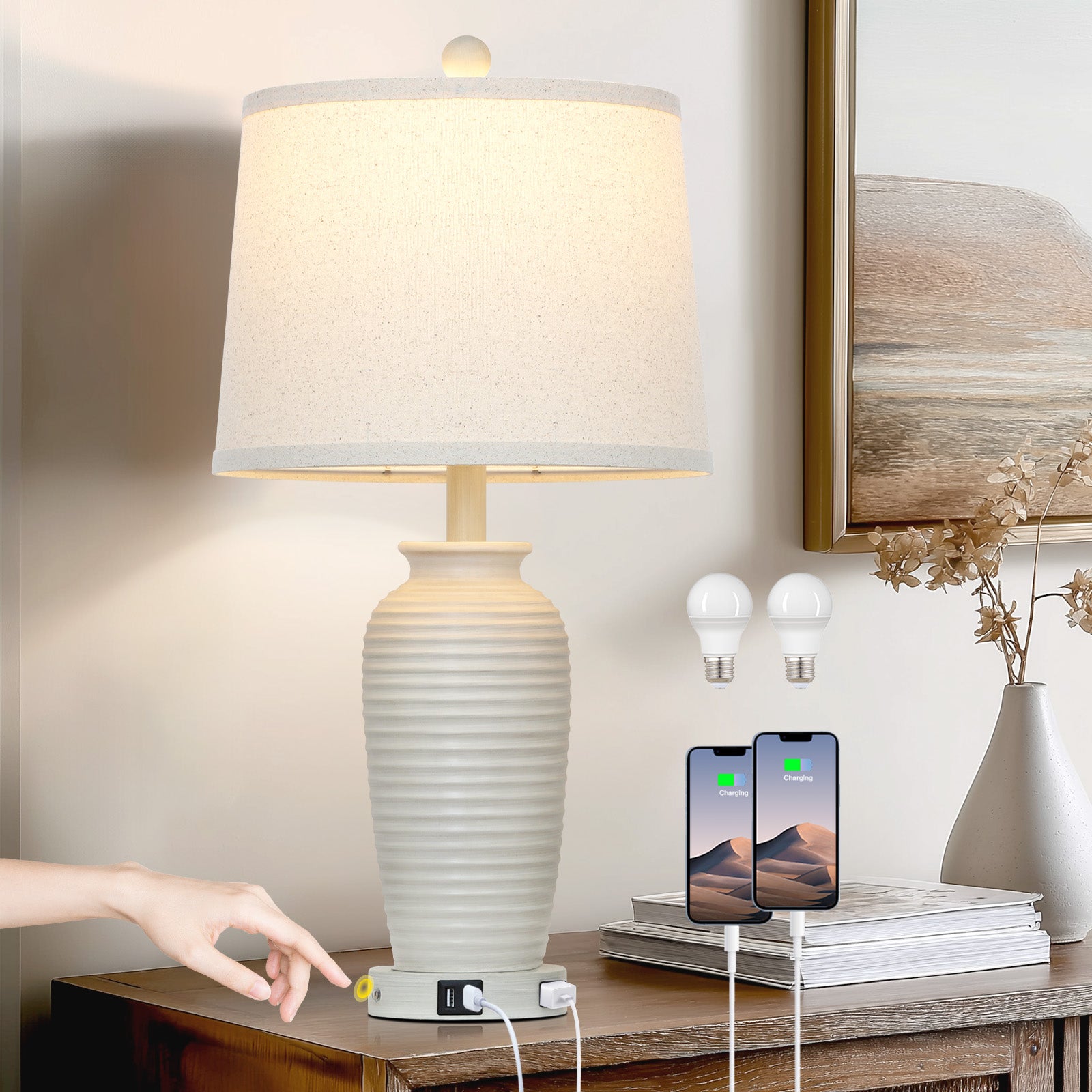 Resin Table Lamps with 3 - Way Touch Dimming, USB Ports and AC Outlet (1P)