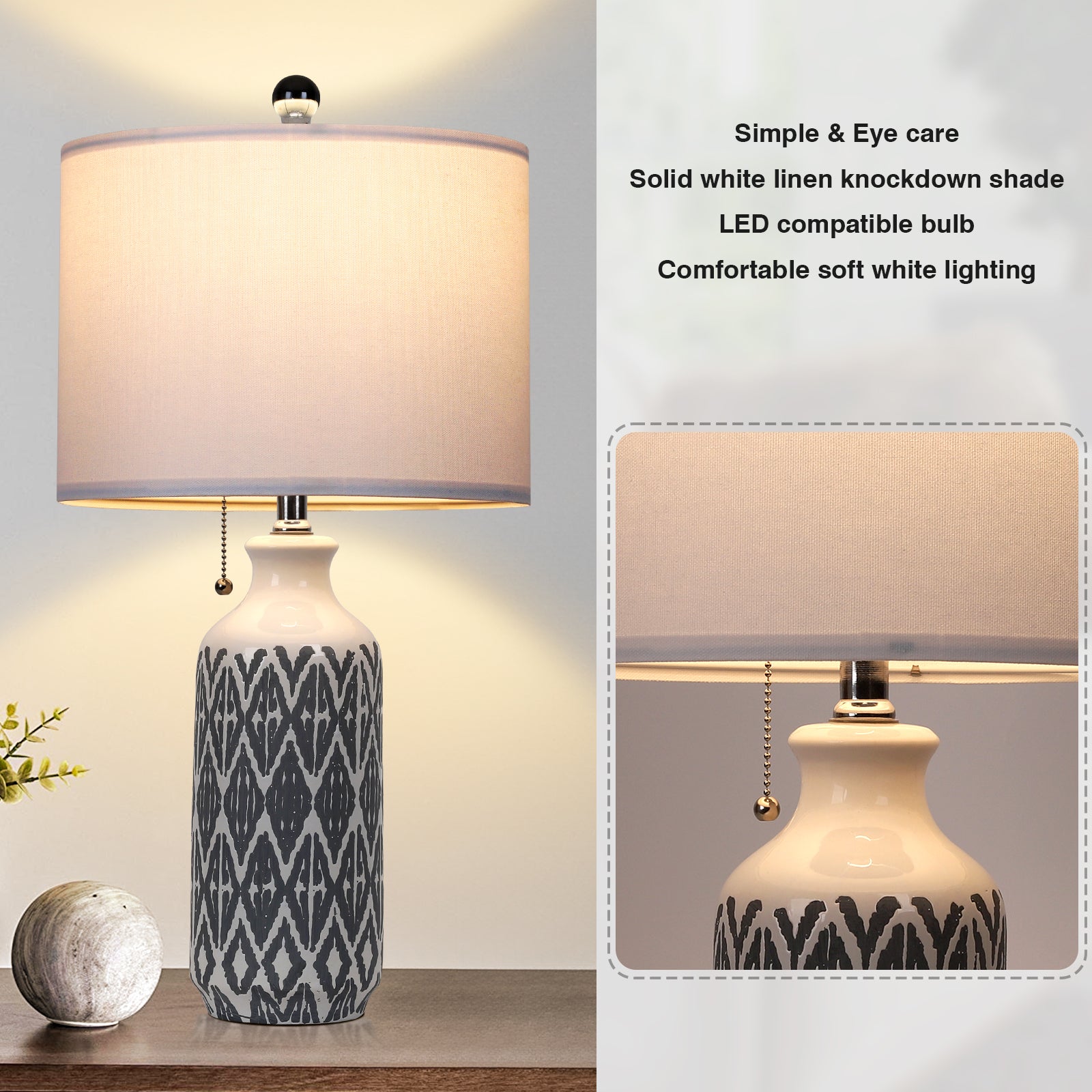 Grey-White Ceramic Table Lamp Boasts Pull Chain Switch, Non-Slip Mat and No Strobe
