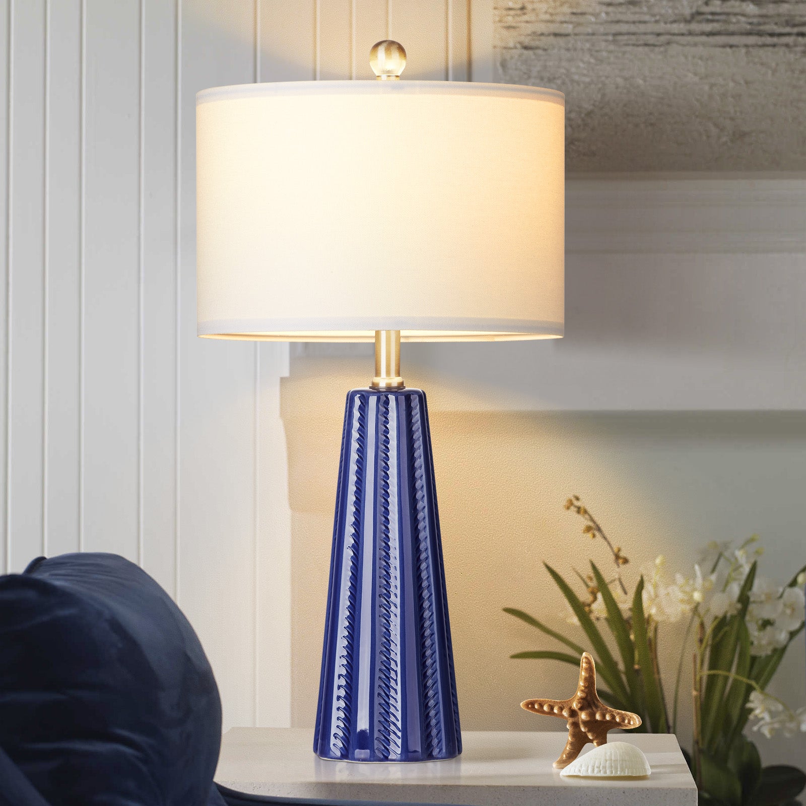 Ceramic blue table lamps with simple rotary switch and knockdown shade (Set of 2)