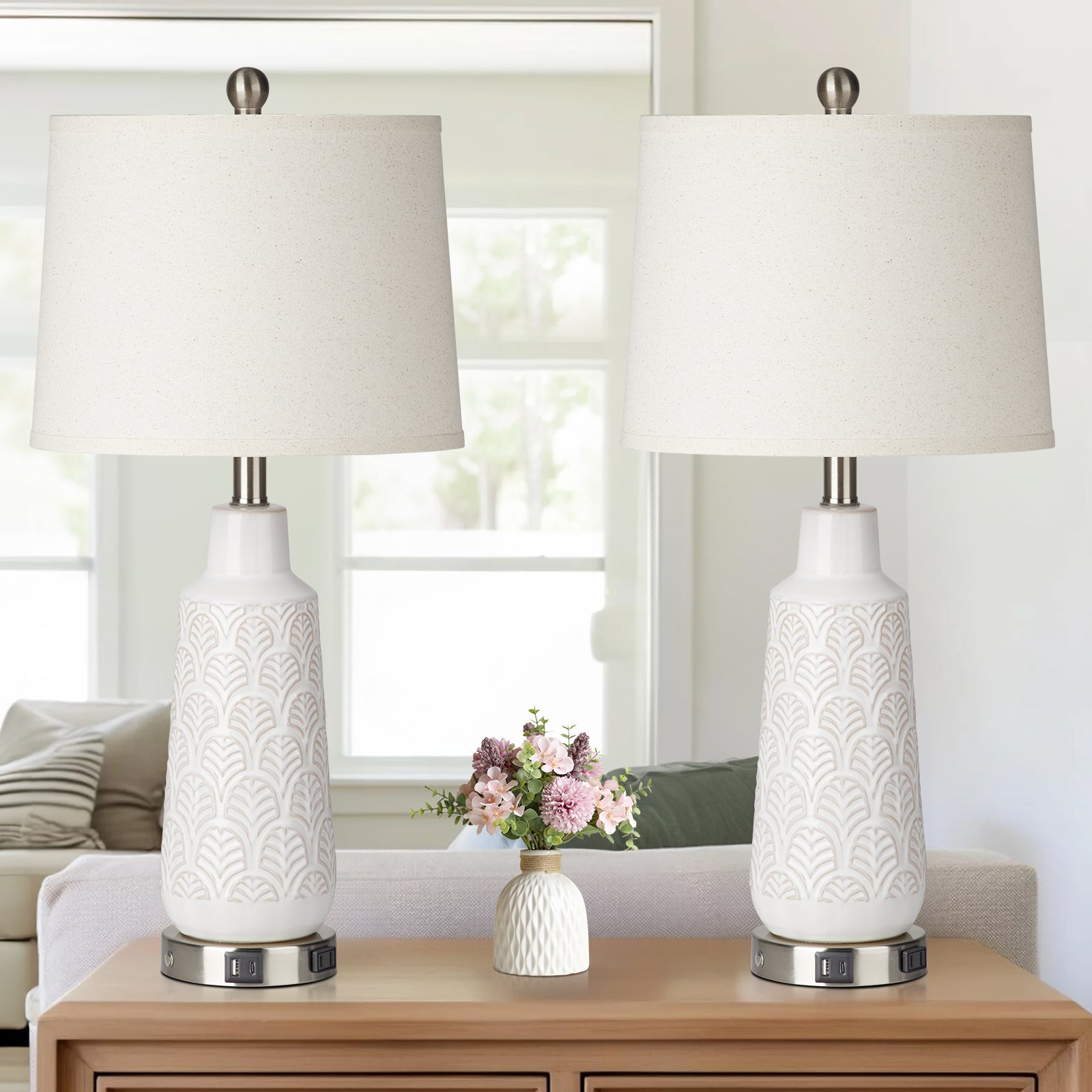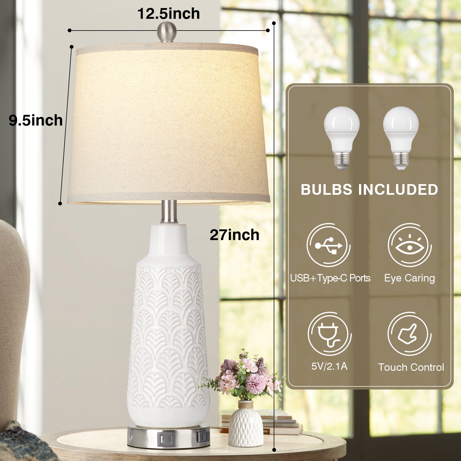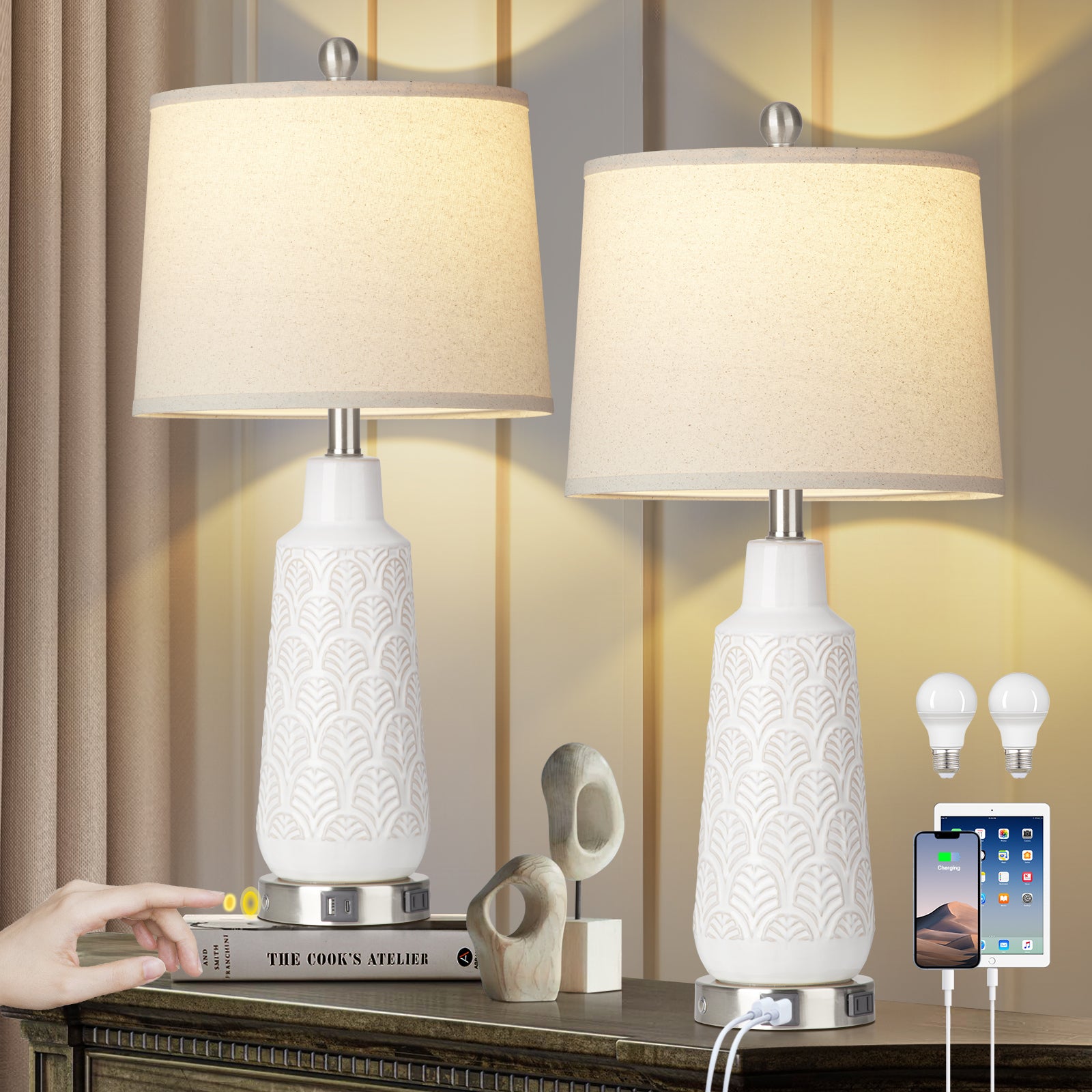 Ceramic White Table Lamps with Ginkgo Leaf Texture and 3 - Way Touch Dimming Switch (Set of 2)