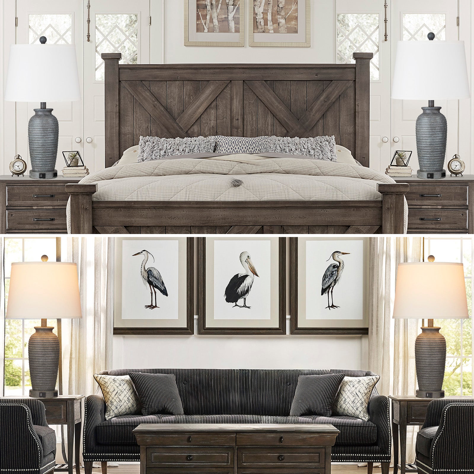 Grey Resin Table Lamps with 3 - Way Touch Dimming, USB Port and AC Outlet (Set of 2)