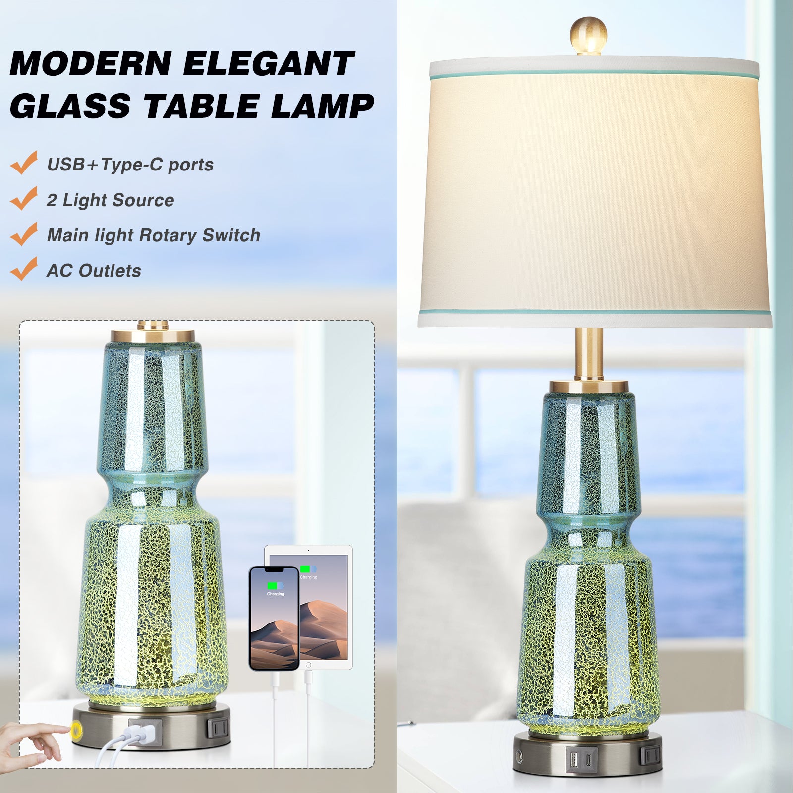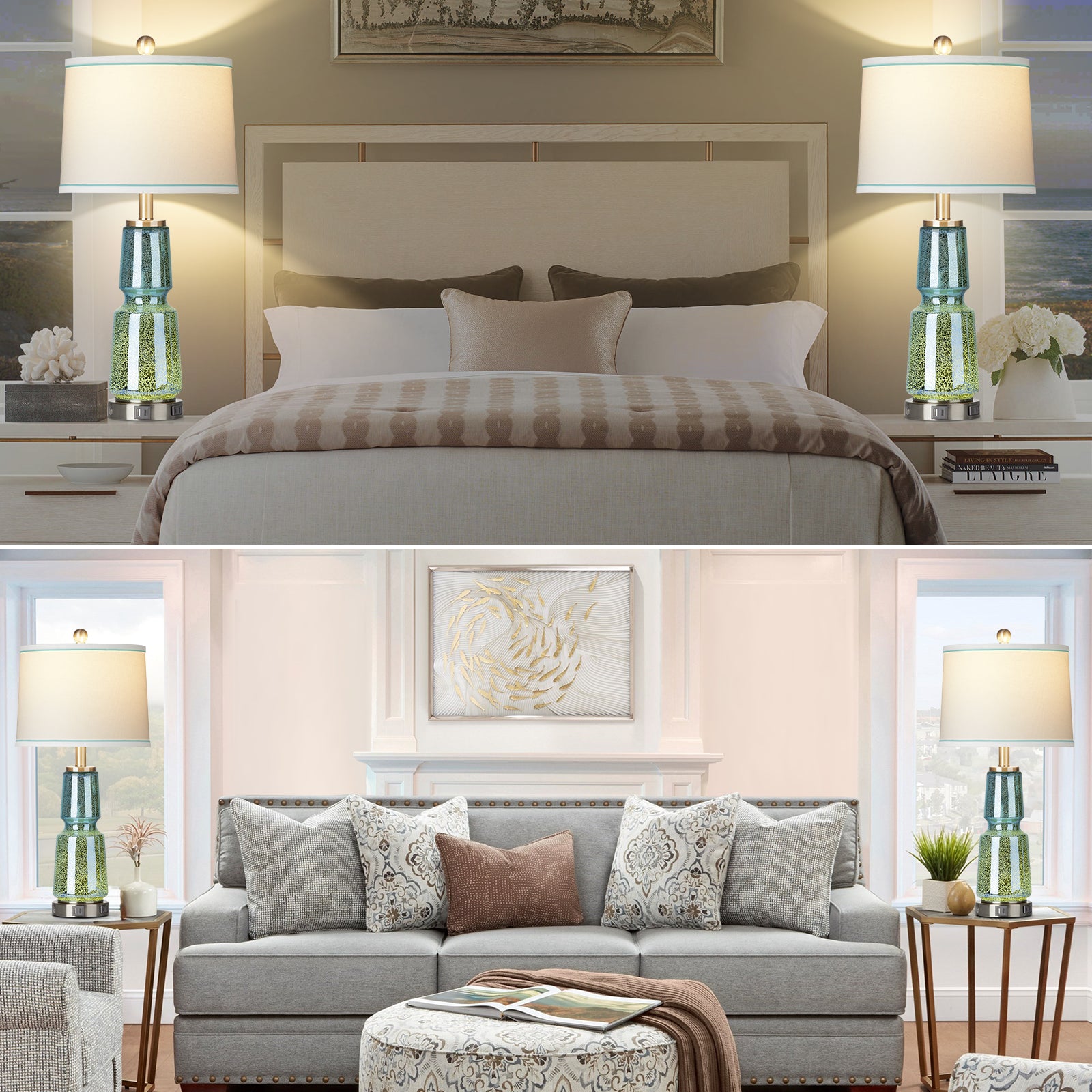 2-in-1 Table Lamp with Nightlight, Made of Blue-green Glass, Ink Textile, and Equipped with a 2-Way Touch Switch (Set of 2)