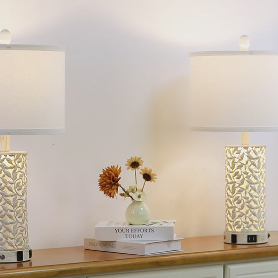 24.5" Vintage Carved Table Lamps with Dual USB Ports, Dimmable Night Light(Set of 2)