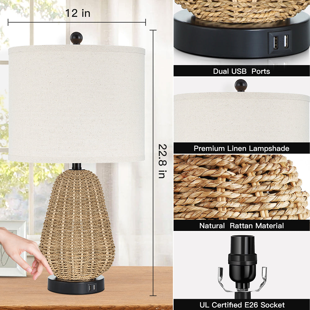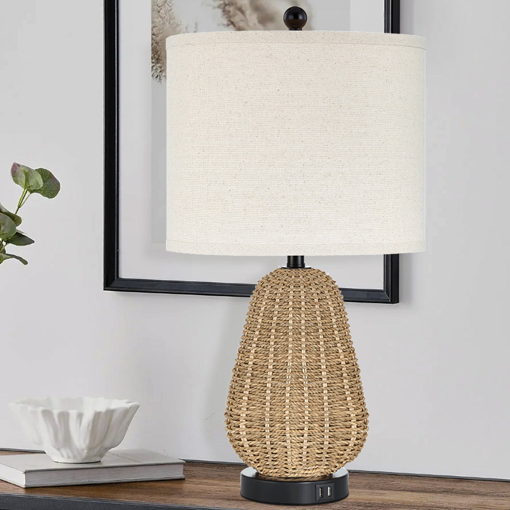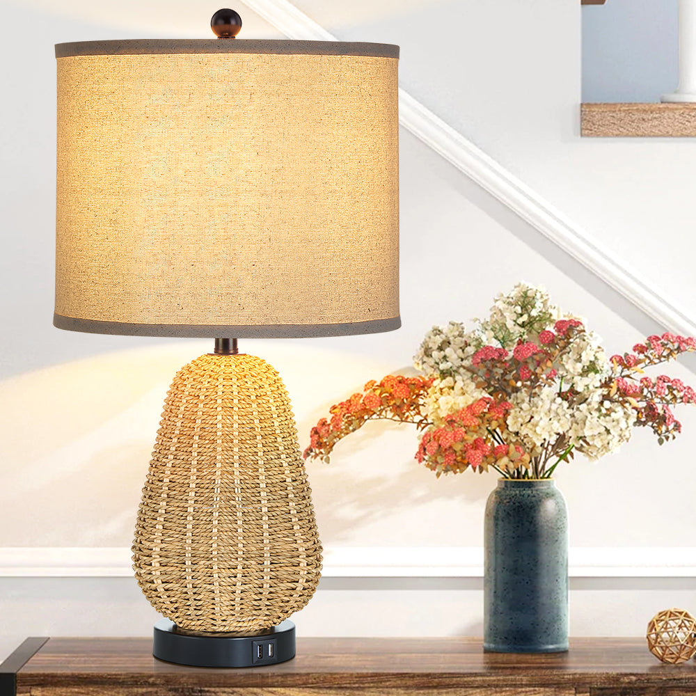 - Embrace the organic charm of our handcrafted rattan table lamps. Infusing your living room with both illumination and artistry, these boho-inspired lamps seamlessly blend nature and home, infusing your space with vitality and elegance. Crafted by skilled artisans, each dimmable table lamp is meticulously woven from rattan, its robust frame enveloped in a distinctive rattan wrapping. Crowned with a natural linen beige lampshade, these lamps effortlessly harmonize with versatile decor themes like coastal, nautical, seaside, and natural styles.