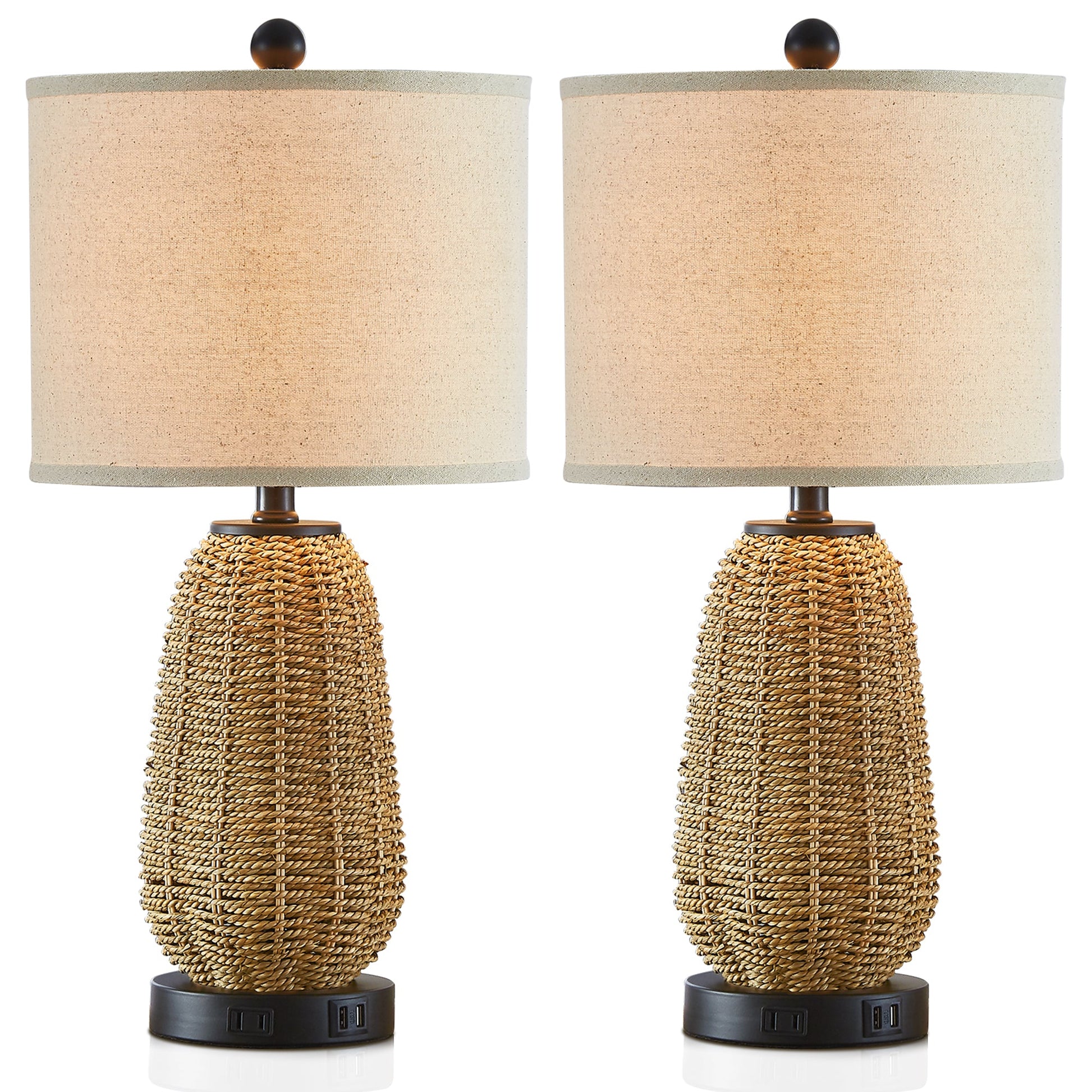 Cinkeda Table Lamp Brown Natural Straw Touch 3-Way Dimming(Set of 2)
