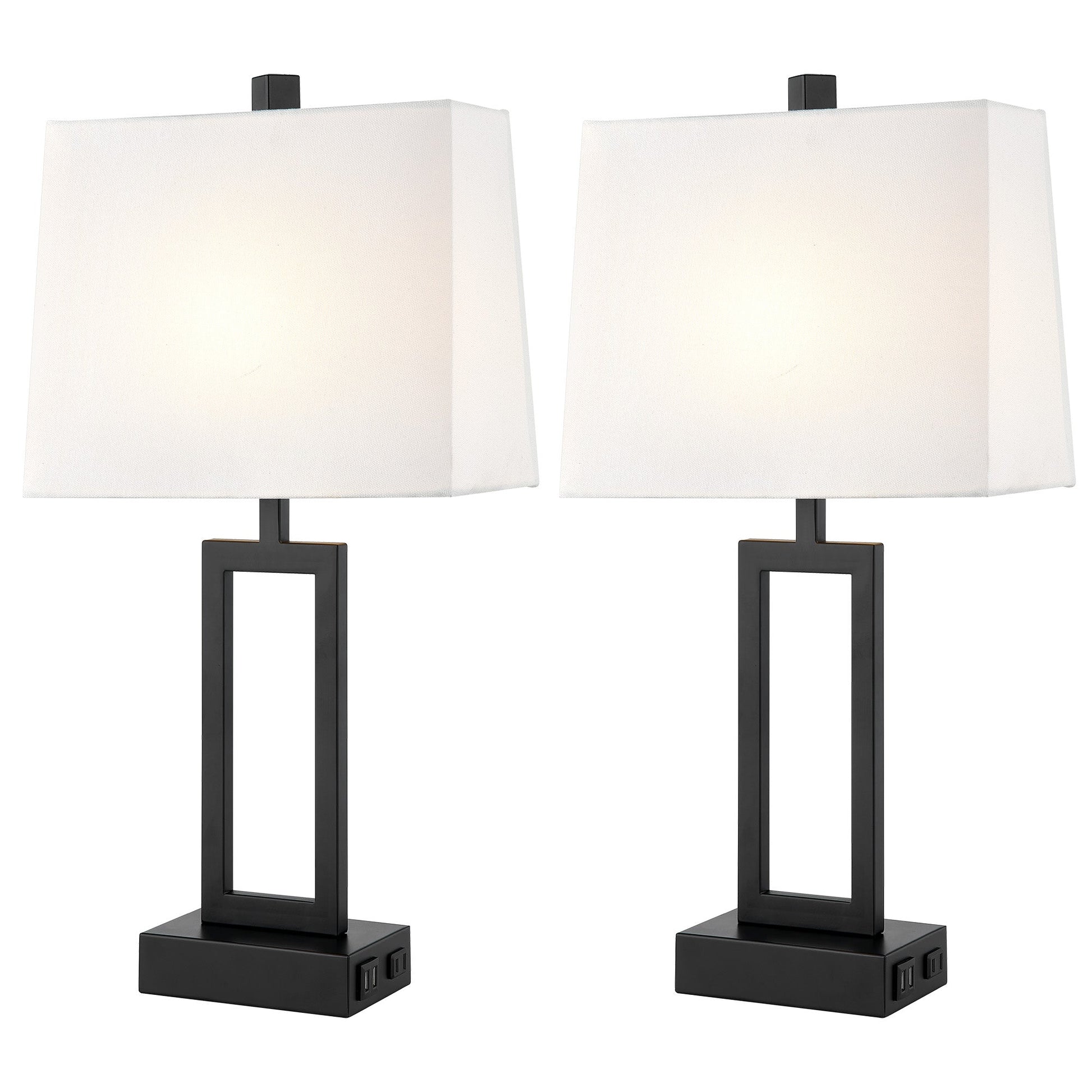 Cinkeda Table Lamp Black Metal Frame White Shade USB Port(Set of 2)